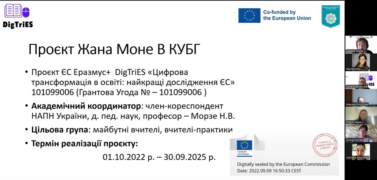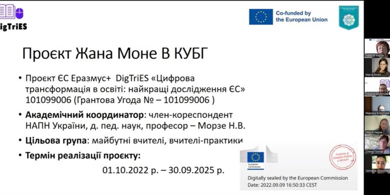 Ми раді повідомити про успішне завершення Літньої школи «Найкращі практики ЄС: цифрові інструменти та рішення для дослідницького STEAM-навчання», що відбулася в межах проєкту «Цифрова трансформація в освіті: найкращі дослідження ЄС» (DigTriES), Erasmus+ (Jean Monnet Module), №10109900. Подія проходила 2–5 червня 2025 року та включала 24 години інтенсивних занять, які поєднували онлайн-роботу й дистанційні завдання.